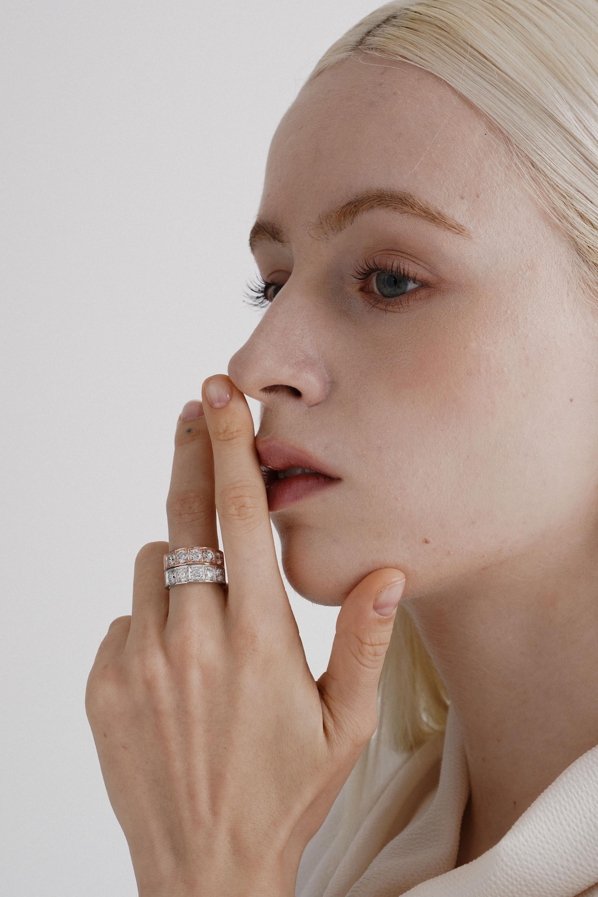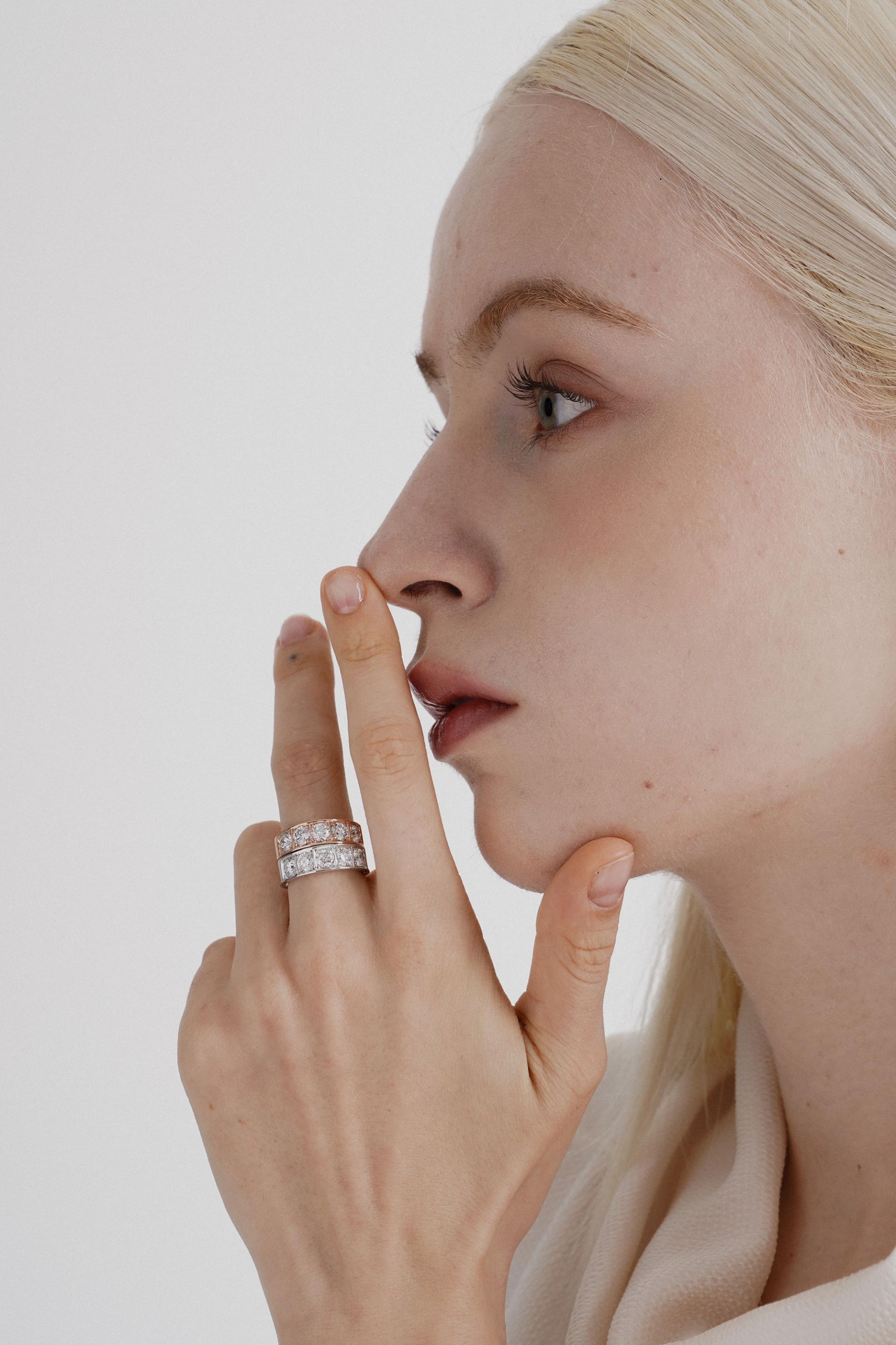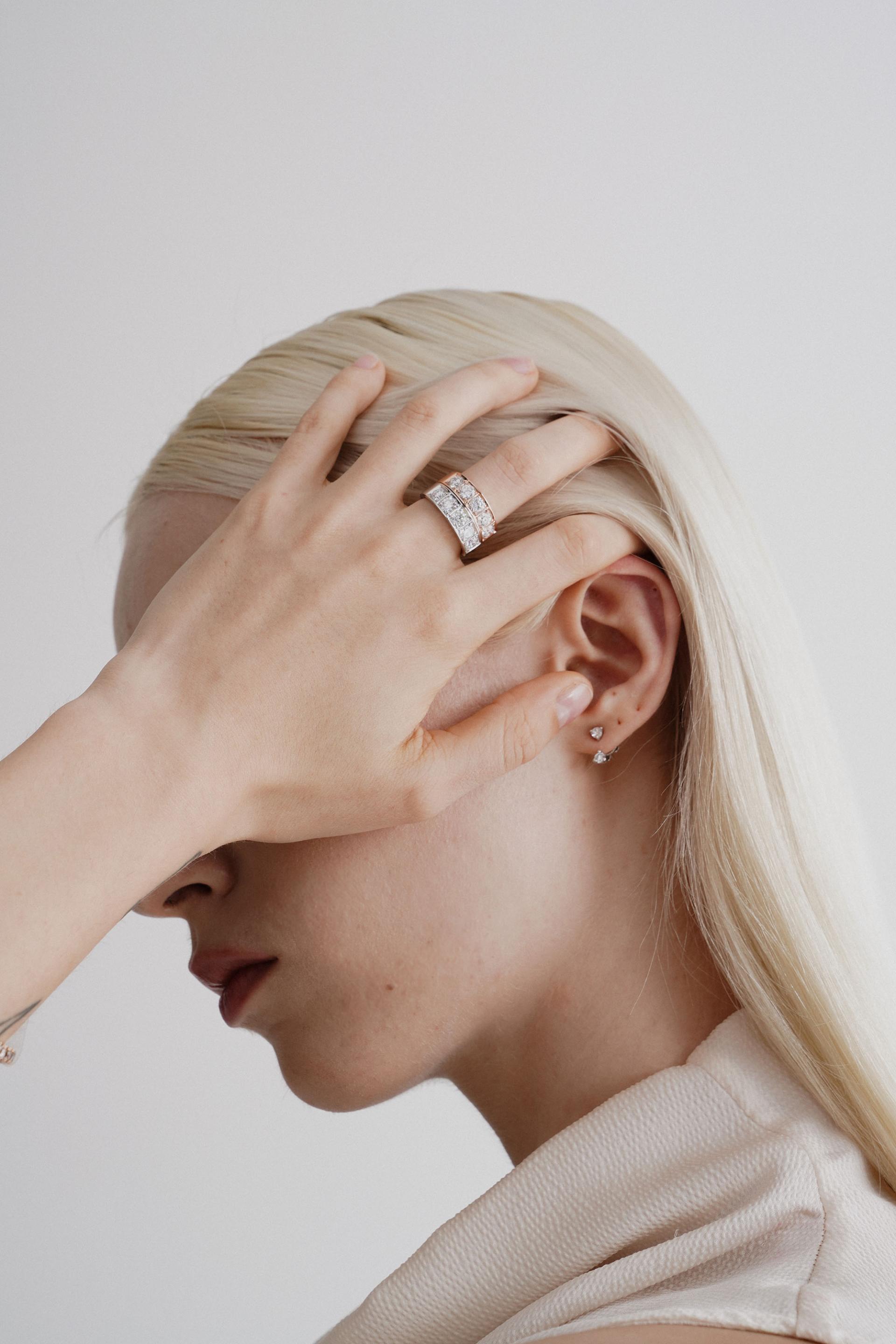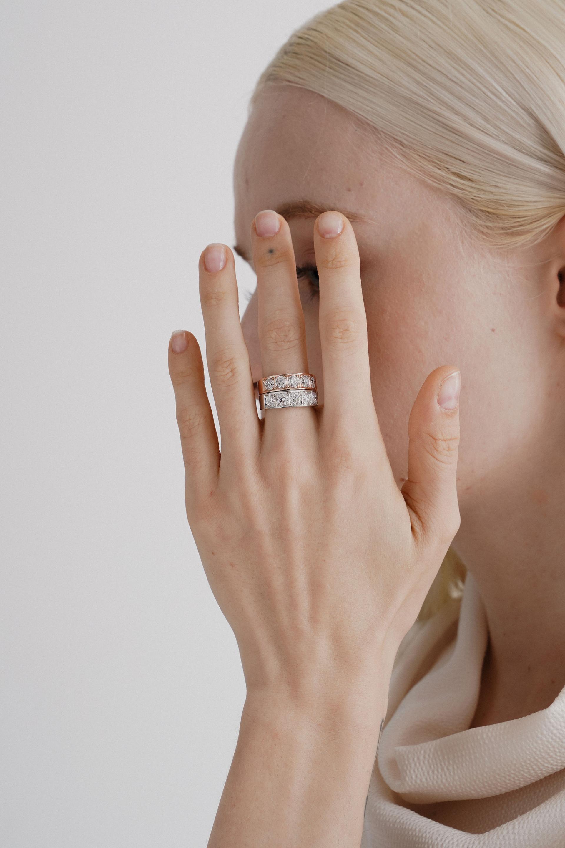 - 볼드한 디자인에 3부 사이즈의 다이아몬드가 어우러져 고급스럽고세련된 느낌을 줍니다.
