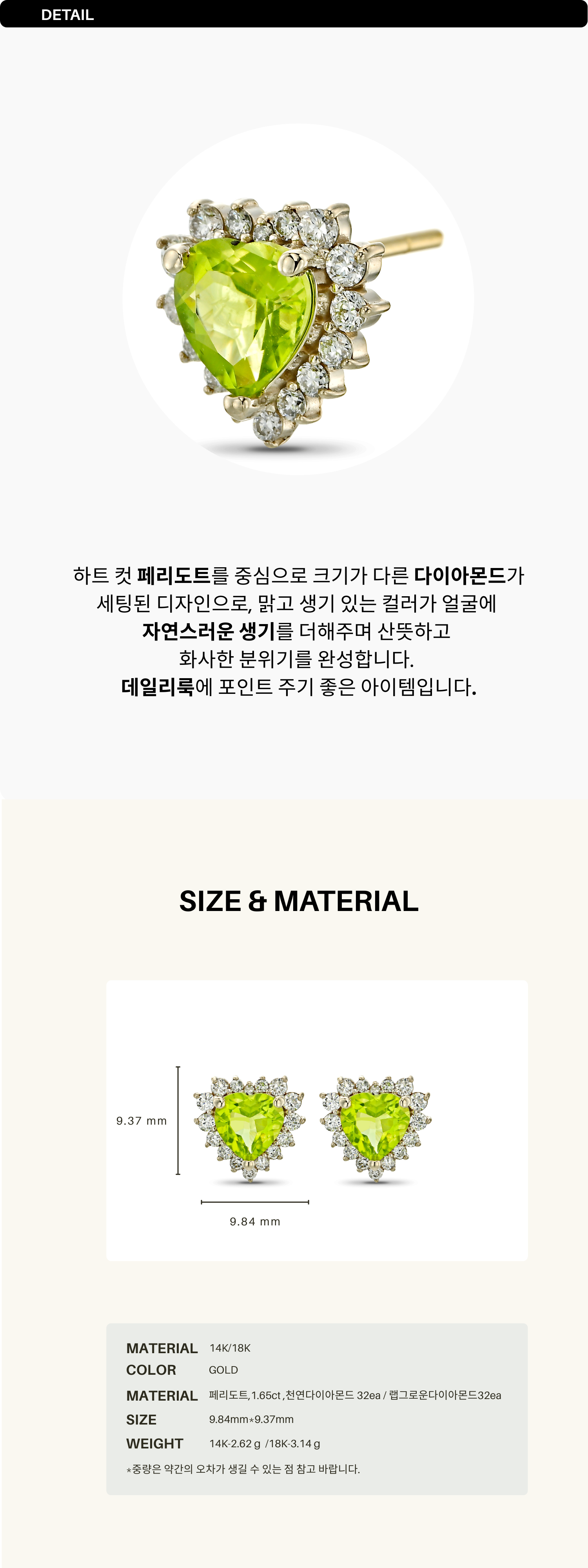 사이즈 교환 및 도금컬러 변경시 추가비용 발생 됩니다.