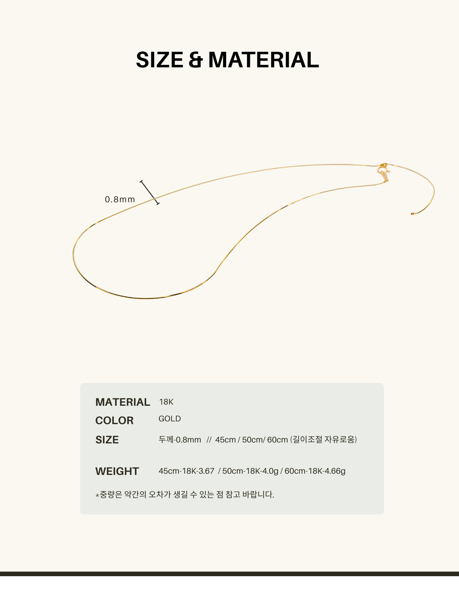 사이즈 교환 및 도금컬러 변경시 추가비용 발생 됩니다.