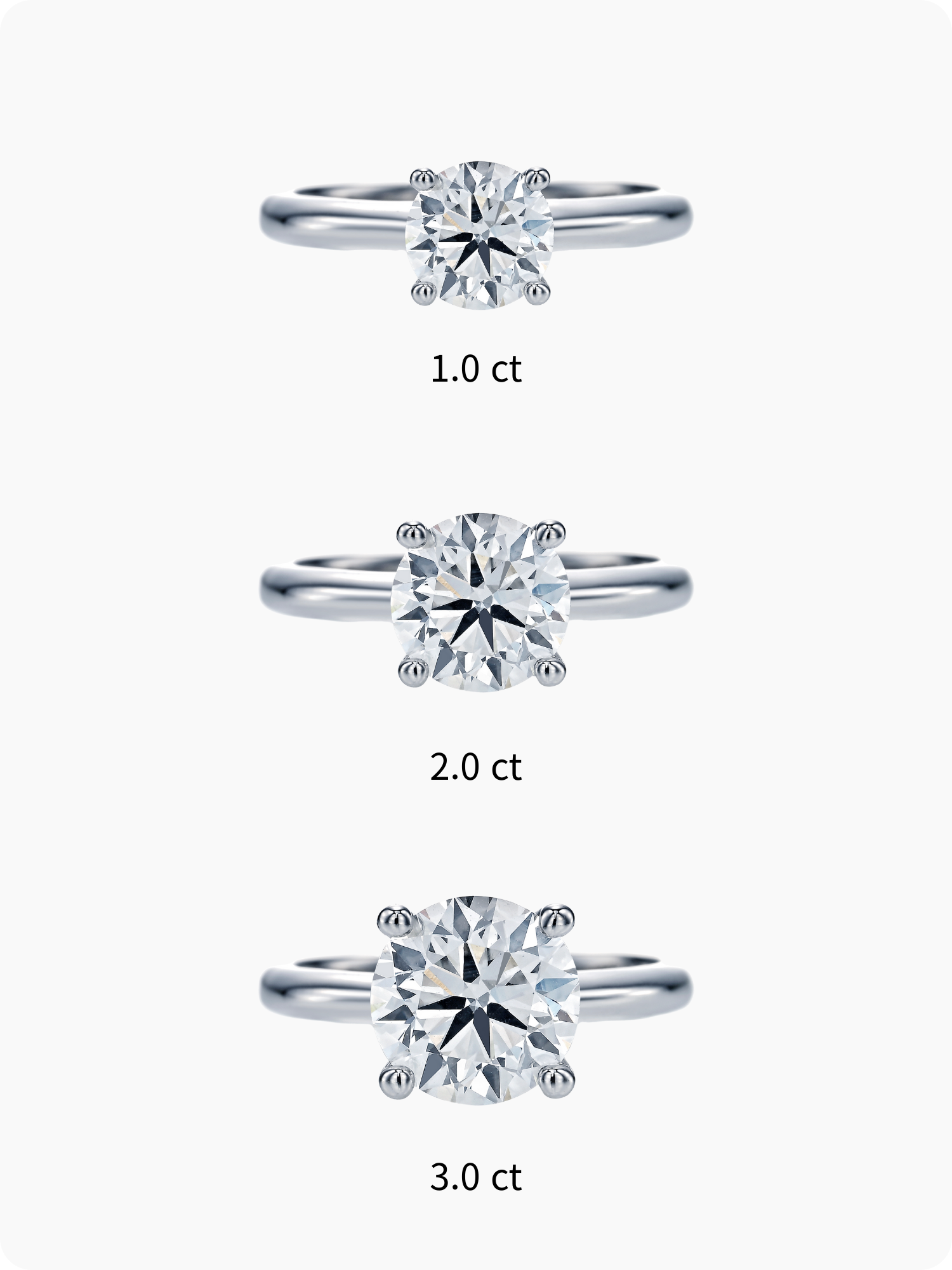 1캐럿, 2캐럿, 3캐럿까지 다양한 캐럿 옵션으로 구성되어 있어 원하는 크기와 분위기에 맞춰 선택할 수 있습니다.